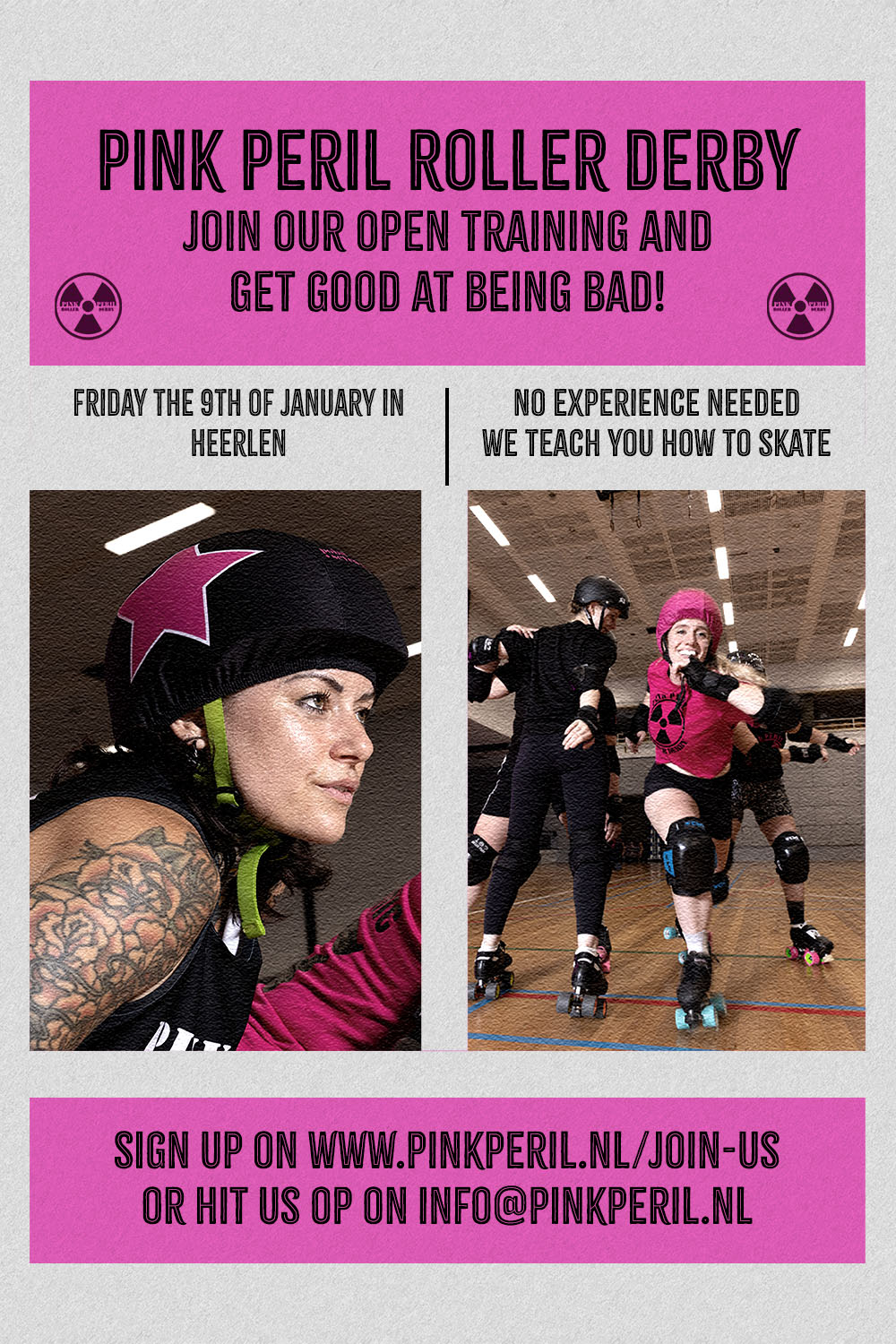 Roller Derby is the fastest growing teamsport at the moment. It’s a very fast, strategic game, played on an oval track – on quad rollerskates. The player with the star on the helmet is called the “jammer”. The jammer scores points by skating laps and passing “blockers” of the opposing team. The blockers will try to prevent this by using hip-, shoulder- and bodychecks!