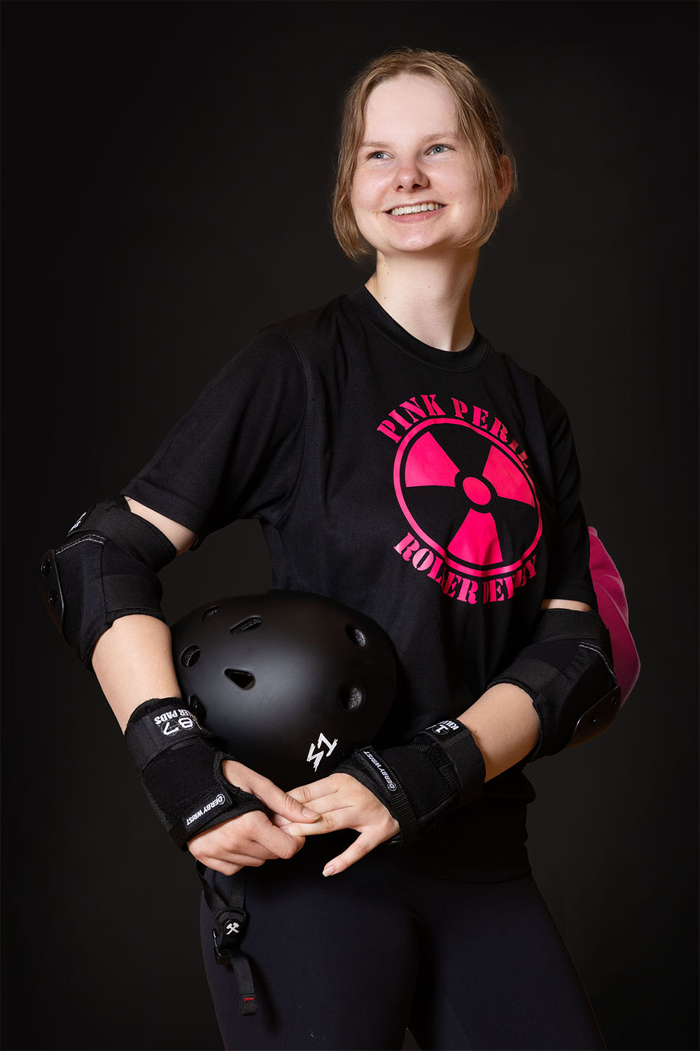 We are scientists, nurses, teachers, politicians, technicians etc.. by day. But when we put on our skates, we turn into our Roller Derby alter-ego’s.We change not only our names, but we become instantly amazing.